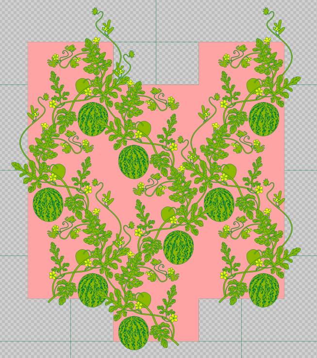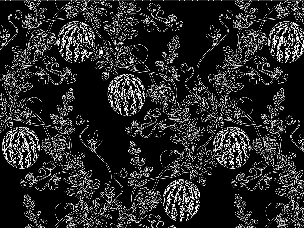 There’s more to do of course, continuing to replacing all the temp leaves, deciding how tedious I want to get doing the tendrils as I do want to be *somewhat* botanically accurate to the watermelon, reordering stray layers, cleaning up all the line junctions, massaging the colors, and raster export shenanigans.